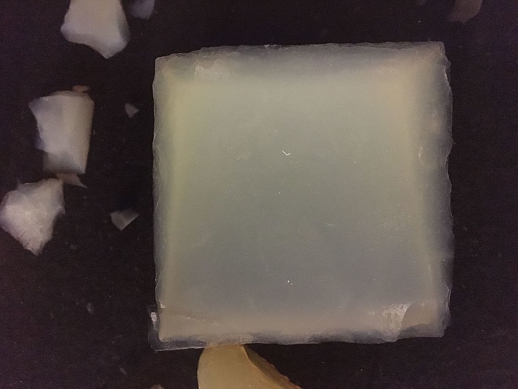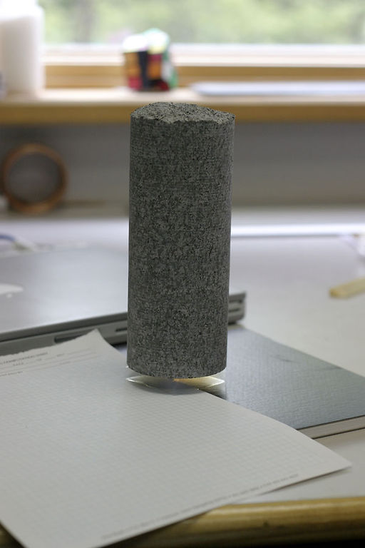 Mai jos poate fi văzut un bloc pătrat de 5 cm de aerogel care susține un cilindru de 4 kg de granit.