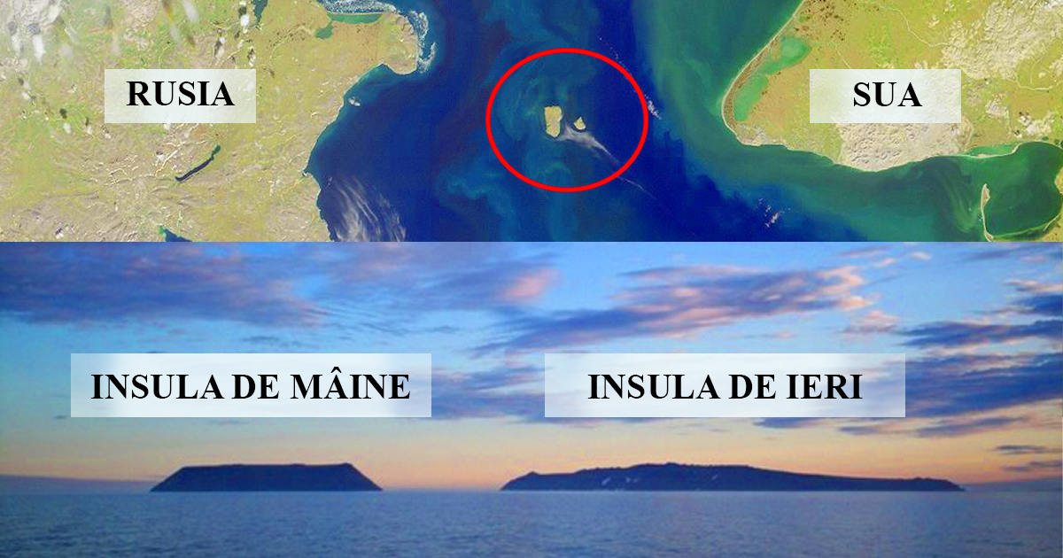 Situate în mijlocul Strâmtorii Bering, între Alaska continentală și Siberia, “Insula de mâine” (Insula Diomede Mare – care are aproximativ 8 kilometri lungime) se află pe partea rusă, în timp ce “Insula de ieri” (Insula Diomede Mică – are aproximativ 4 km lungime) se află pe partea americană.