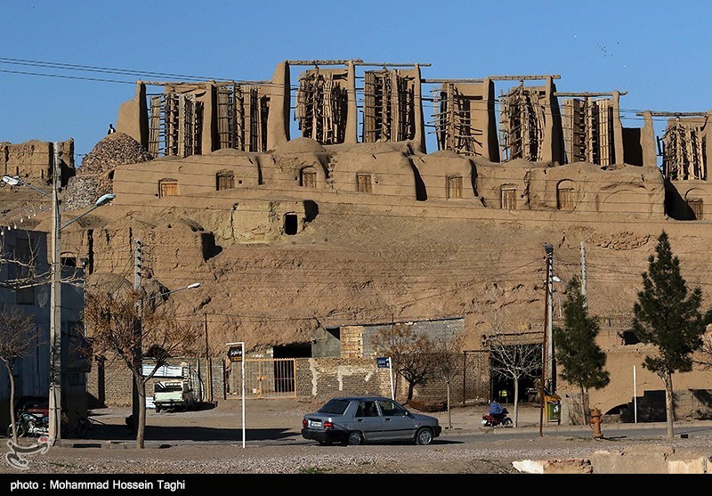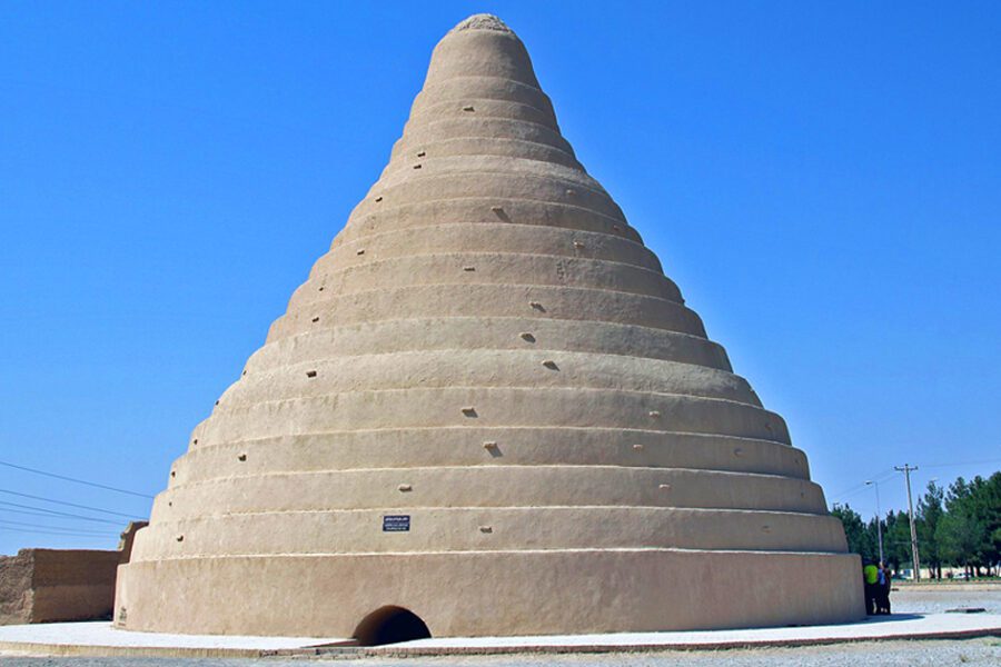 De-a lungul marginii sudice a orașului, un zid de pământ înalt de 20 de metri îi protejează pe locuitori de rafalele de vânt puternice. Zidul înalt adăpostește aproape 30 de mori de vânt cu ax vertical, în mare parte funcționale, care datează din perioada persană antică. Se estimează că structurile, realizate din lut, paie și lemn, au o vechime de peste 1.000 de ani, fiind folosite pentru măcinarea cerealelor.